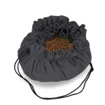 Verdeel droogvoer of snacks over de mat en laat je huisdier het lekkers zoeken tussen de stoflussen. Gebruik het trekkoord om de mat kleiner te maken voor extra uitdaging, of trek het volledig aan om een mand te vormen.