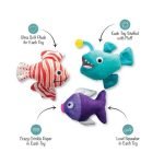 Onder de zee! De 3-delige miniknuffelset “Any fin is possible” van Kwispeltoys is perfect voor de speelse pup die dol is op apporteerspelletjes. Elk speeltje in deze set is uitgerust met een luide pieper en knisperpapier om je hond urenlang bezig te houden. Met een kleurrijk, visachtig ontwerp biedt deze set eindeloos plezier voor je kleine viervoeter.