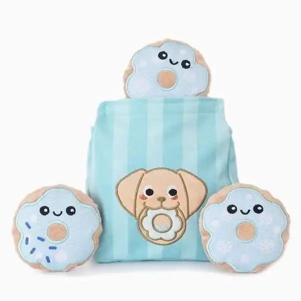 Trakteer je hond op de Winter Bites – Donuts! Dit leuke, krakende zakje is gevuld met drie zoete donuts, speciaal ontworpen om je hond bezig te houden en zijn hersenen te stimuleren. De donuts en het zakje zijn perfect voor honden die houden van zoek- en verstopspelletjes en bieden een geweldige manier om verveling tegen te gaan.
